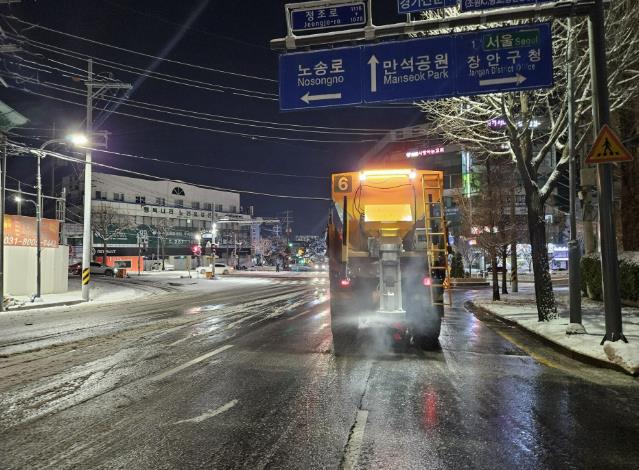 블랙아이스(도로 결빙)에 대비해 5일 오전 2시부터 제설제를 추가로 살포할 예정이다. 수원시는 지속해서 도로를 순찰하며 신속하게 제설 작업을 할 예정이다.