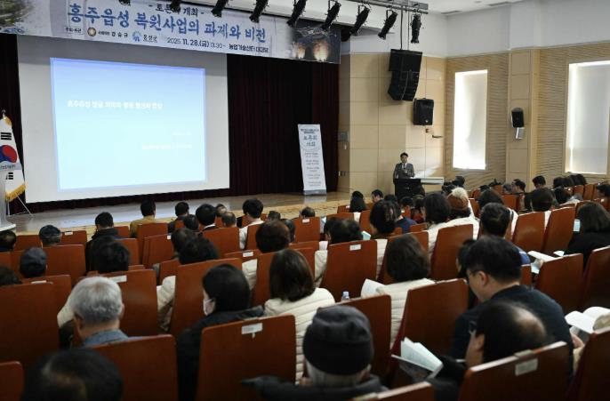 [뉴스다컴] 홍성군은 ‘홍주읍성 복원사업의 과제와 비전 토론회(이하 토론회)’가 지난 28일 홍성농업기술센터 대강당에서 지역주민과 관련 연구자 등 200여 명이 참석한 가운데 성황리에 마무리됐다고 밝혔다.