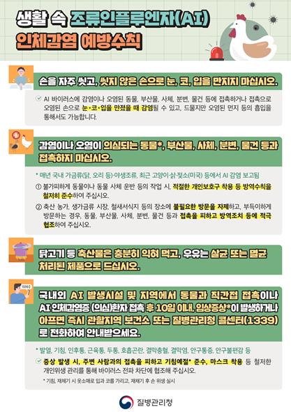 철원군보건소는 AI 인체감염증 예방을 위해 다음과 같은 수칙을 지켜줄 것을 강조했다.