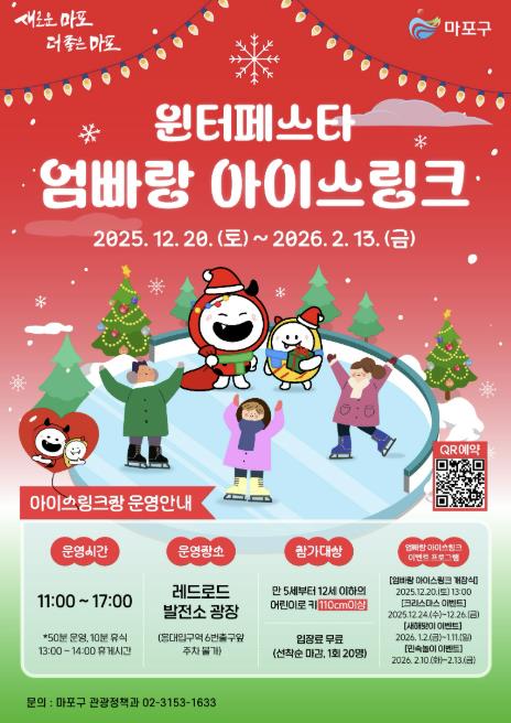아울러 마포구는 아이스링크 주변으로도 크리스마스 장식과 화려한 조명을 더해 깊어가는 겨울의 분위기를 높일 예정이다.