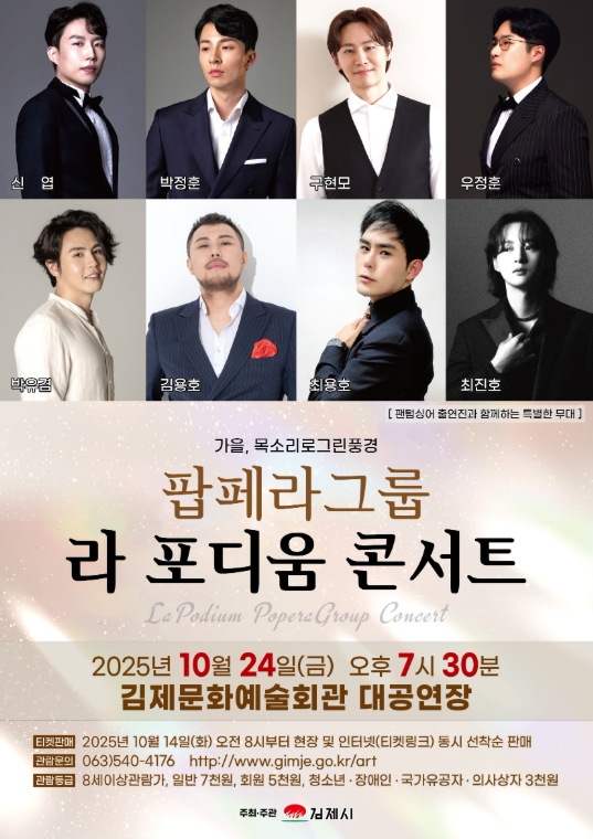 [뉴스다컴] 깊어 가는 가을, 특별한 음악의 향연 팝페라 그룹'라 포디움 콘서트'가 오는 24일 오후 7시 30분 김제문화예술회관 대공연장에서 펼쳐진다.
