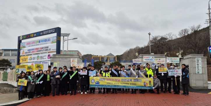 | ▲ 지난해 군, 교육지원청, 경찰서 등 유관기관과 함께 새학기 첫날 안전교육 캠페인을 하는 모습 |