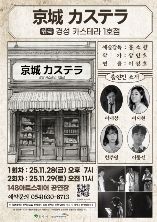 [뉴스다컴] (재)영주문화관광재단은 오는 11월 28일 오후 7시와 11월 29일 오전 11시, 148아트스퀘어 공연장에서 광복 80주년을 기념한 창작연극 '경성 카스테라 1호점'을 선보인다.