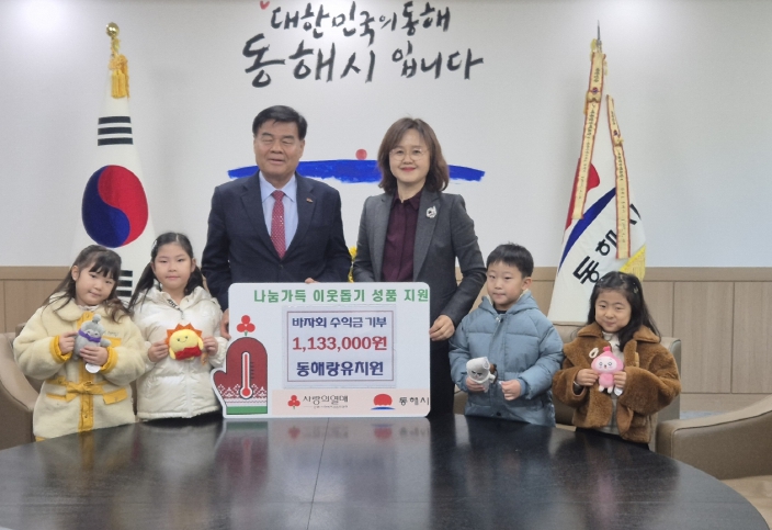 [뉴스다컴] 동해랑유치원(원장 이은주)은 최근 원내에서 개최한 바자회 수익금 1,133,000원을 어려운 이웃을 위해 사용해 달라며 동해시에 기탁했다.