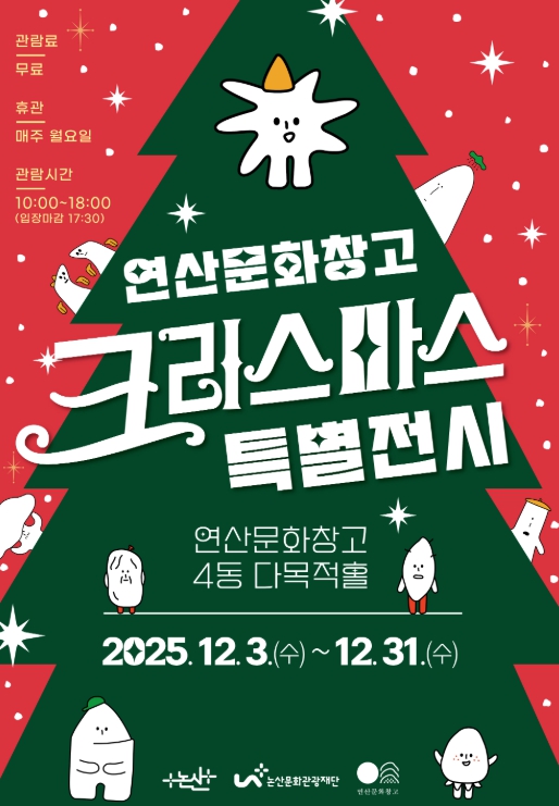 [뉴스다컴] (재)논산문화관광재단은 오는 12월 3일부터 12월 31일까지 한 달간 연산문화창고 4동 다목적홀에서 ‘2025 연산문화창고 크리스마스 특별전시’를 선보인다고 밝혔다.