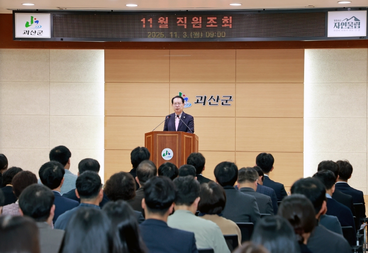 [뉴스다컴] 충북 괴산군은 3일 군청 대회의실에서 11월 직원조회를 열고, 올해 지역축제의 성과와 연말까지 중점 추진할 과제들을 공유했다.