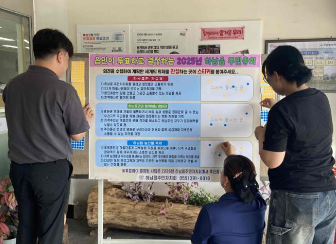 주민들은 △하남읍민 가요제 △하남읍민과 함께하는 영화관 △하남읍 농산물 축제 중 희망하는 사업 한 가지를 선택해 투표 판에 스티커를 부착하는 방식으로 참여할 수 있다.
