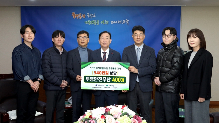 [뉴스다컴] 대전시교육청은 12월 8일 초록우산 대전지역본부로부터 340만원 상당의 투명안전우산 400개를 전달받았다고 밝혔다.