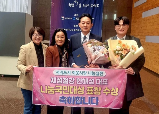 [뉴스다컴] 서귀포시는 재성철강 한해성 대표가 2014년부터 11년간 이웃사랑을 적극 실천해 온 공로를 인정받아 11월 6일 서울 KBS 본사에서 열린 ‘2025년 나눔국민대상 시상식’에서 민간단체장 대표수상자로 표창(KBS사장 표창)을 수상했다고 밝혔다.