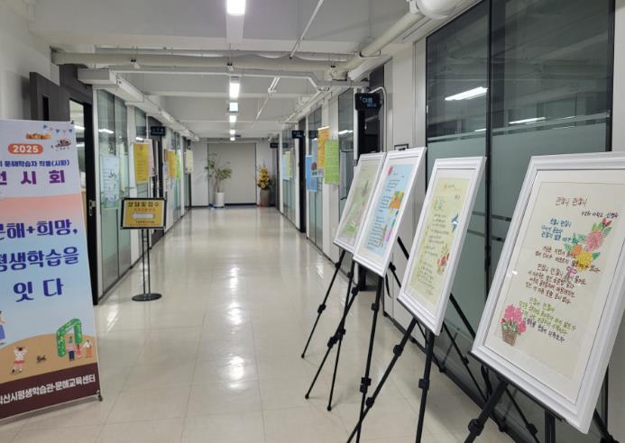 이번 전시는 익산시 성인문해교육사업 참여자들이 직접 쓰고 그린 시화 작품 50여 점을 만날 수 있으며, 시민 누구나 관람할 수 있다.