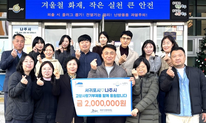 [뉴스다컴] 전라남도 나주시는 지난 17일 나주시 세무과와 제주특별자치도 서귀포시 세무과 직원들이 고향사랑기부금 상호 교차 기부에 동참했다고 밝혔다.