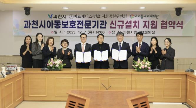 [뉴스다컴] 과천시는 지난 4일 시청 회의실에서 메르세데스-벤츠 사회공헌위원회 및 사회복지법인 아이들과미래재단과 ‘과천시아동보호전문기관 신규 설치’를 위한 협약식을 개최했다고 밝혔다.