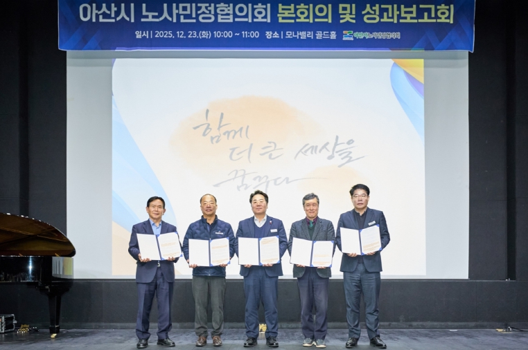 [뉴스다컴] 아산시 노사민정협의회(위원장 오세현 시장)는 23일 모나밸리에서 협의회 위원과 기업 관계자 등 100여 명이 참석한 가운데 ‘2025 아산시 노사민정협의회 성과보고회’를 열고, 올해 협력사업 성과를 공유했다.