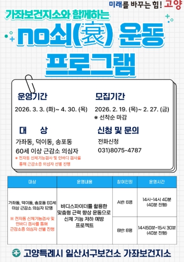 ▲ 가좌보건지소‘NO쇠(衰) 운동 프로그램’모집 안내문