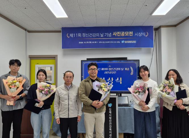 [뉴스다컴] 김제시는 10월 10일 정신건강의 날을 맞아 정신건강의 중요성에 대한 홍보 및 관심을 고취시키고 정신건강에 대한 인식개선을 도모하고자 제11회 정신건강 사진공모전“마음행복사진관:행복의 계절”을 개최하고 23일 시상식을 개최했다고 밝혔다.