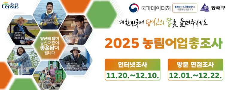 [뉴스다컴] 부산 동래구는 11월 20일부터 12월 22일까지 33일간 ‘2025 농림어업총조사’를 실시한다고 밝혔다.