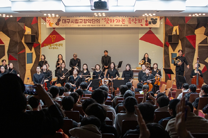 [뉴스다컴] 대구문화예술진흥원 산하 대구시립교향악단(음악감독 겸 상임지휘자 백진현)이 10월 29일 한국폴리텍대학 대구캠퍼스 본부 4층 시청각실에서 올해 마지막 ‘찾아가는 음악회’를 성료했다.