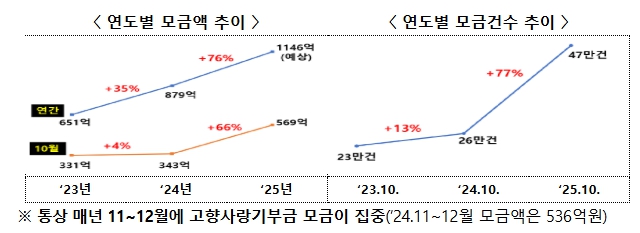 통상적으로 연말(11월~12월)에 기부금의 약 50%가 집중되는 점을 고려할 때, 올해 모금액은 1,000억 원을 넘어설 것으로 예상된다.