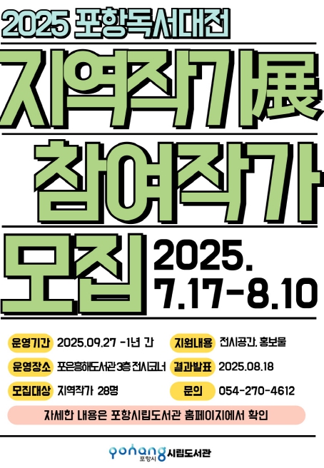 전시 기간은 ‘2025 포항독서대전’을 시작으로 약 1년간 이어진다. 참가에 관련한 자세한 사항은 포항시립도서관 홈페이지 공지사항에서 확인할 수 있다.