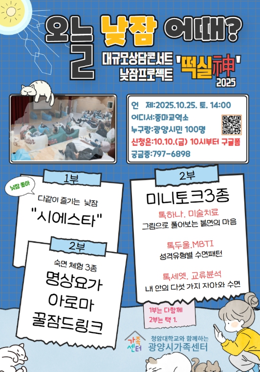 ▲ 광양시가족센터, 낮잠 프로젝트 ‘떡실神’으로 시민 마음건강 회복 돕는다 |
