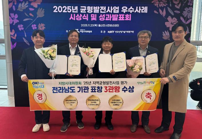 [뉴스다컴] 전라남도는 대통령직속 지방시대위원회에서 주최하는 2025년 균형발전사업 우수사례 시상식에서 전국에서 유일하게 3개 부문을 모두 수상했다고 밝혔다.