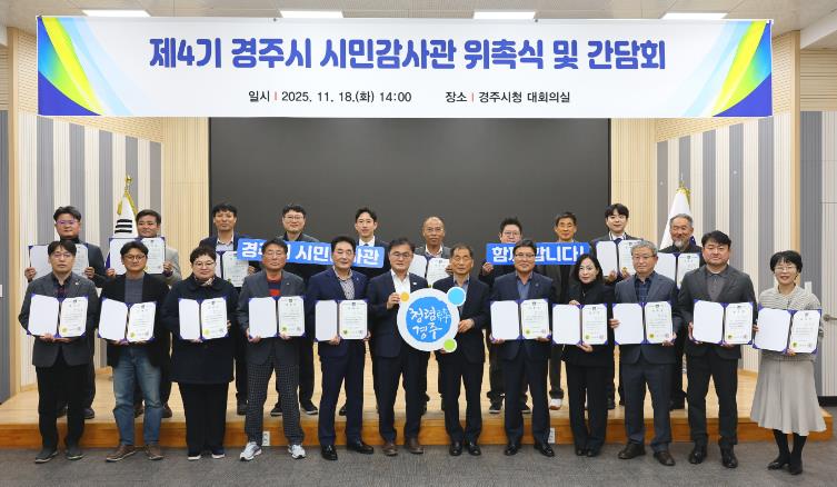 [뉴스다컴] 경주시는 18일 시민 참여를 통한 투명하고 신뢰받는 시정 구현을 목표로 ‘제4기 시민감사관 위촉식’을 개최했다.