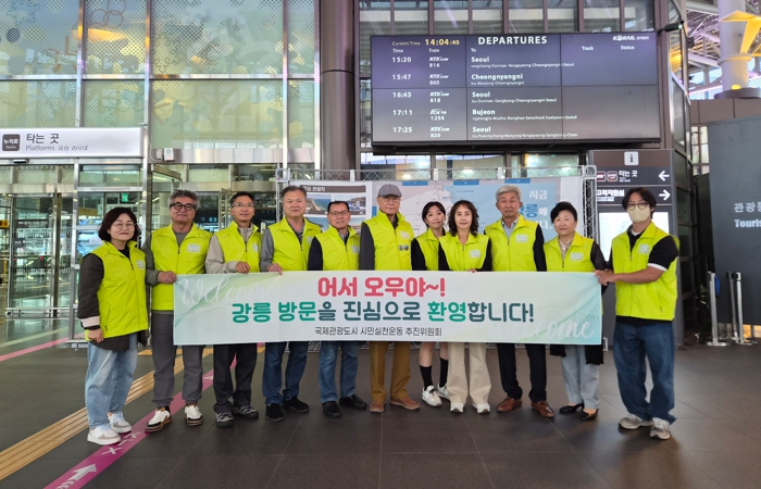 [뉴스다컴] 국제관광도시 시민실천운동 추진위원회 친절분과 소속 30여 명은 지난 11일 강릉역에서 전국 제일의 친절한 도시 강릉 조성을 위하여 관광객 환영 캠페인을 추진했다.