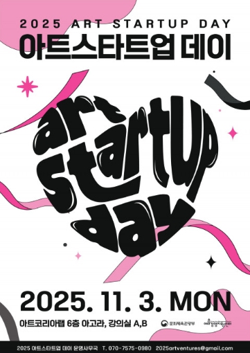 [뉴스다컴] 문화체육관광부(장관 최휘영)가 주최하고 예술경영지원센터(대표 김장호)가 주관하는 ‘2025 아트 스타트업 데이’가 오는 11월 3일(월) 서울 종로구 아트코리아랩(Arts Korea Lab)에서 개최된다.
