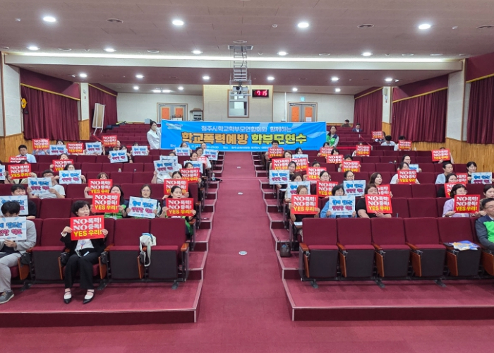 [뉴스다컴] 청주교육지원청과 청주학교학부모연합회는 9월 17일 청주교육지원청에서 청주시내 초,중,고,특수 학부모를 대상으로 체험형 학교폭력예방 연수를 진행했다.