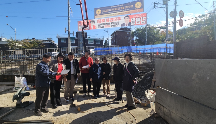 [뉴스다컴] 강북구의회 유인애 의원(번1·2동, 수유2·3동)이 강북구 번동 441-1번지 진숙빌라 담장 재설치 공사 현장을 방문해 주민 안전을 위한 현장 점검을 실시했다. 이 자리에는 김원필 국민의힘 강북갑 당협위원장, 이종환 서울시의회 부의장. 이성희 전 서울시의원도 함께해 공사 추진 상황을 꼼꼼히 살폈다.