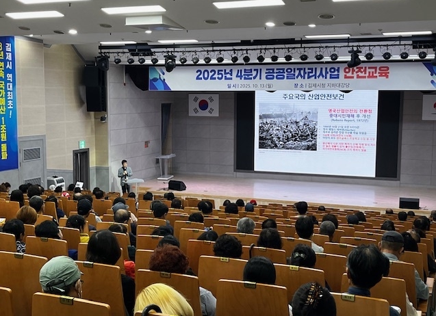 [뉴스다컴] 김제시는 13일, 시청 지하대강당에서 공공일자리사업 참여자를 대상으로 안전보건교육을 실시했다고 밝혔다.