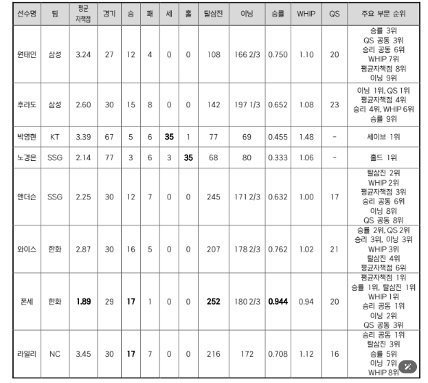 | ▲ 2025 KBO MVP 후보(투수-8명) |
