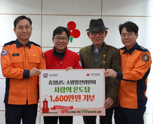 [뉴스다컴] 충청남도 소방발전위원회(소방정책 자문·협의기구)는 지난 30일 연말연시 이웃돕기 성금 모금인 ‘사랑의 온도탑’에 성금 1600만 원을 기탁했다고 1일 밝혔다.