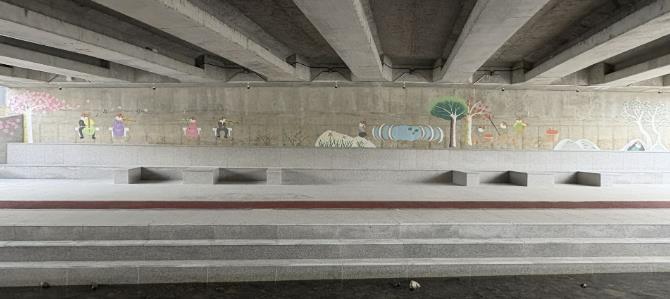 [뉴스다컴] 충주시 호암직동 주민자치위원회에서 시민들이 즐겨 찾는 호암물정원 산책로 일원 호암2교 친수공간에 벽화를 조성했다고 5일 밝혔다.