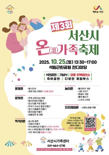 [뉴스다컴] 충남 서산시는 오는 10월 25일 석림근린공원 잔디마당 일원에서 제3회 온(溫)가족 축제를 개최한다고 밝혔다.