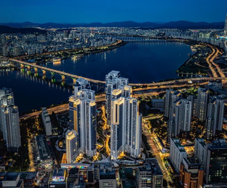 이번 사업은 2003년 9월 조합 설립 이후 22년 만에 결실을 맺은 대규모 재건축 정비사업이다. 오랜 기다림 끝에 ‘청담 르엘’로 새롭게 태어난 이 아파트 단지는 지하 4층~지상 35층, 총 9개 동 1,261세대 규모로, 한강 조망권은 물론 청담역과 올림픽대로, 영동대교 등과 인접해 뛰어난 입지 조건을 갖췄다.