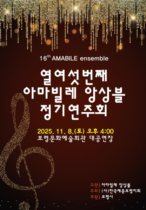 [뉴스다컴] 보령시는 아마빌레 앙상블이 오는 11월 8일 보령문화예술회관 대공연장에서 제16회 정기연주회를 개최한다고 밝혔다.