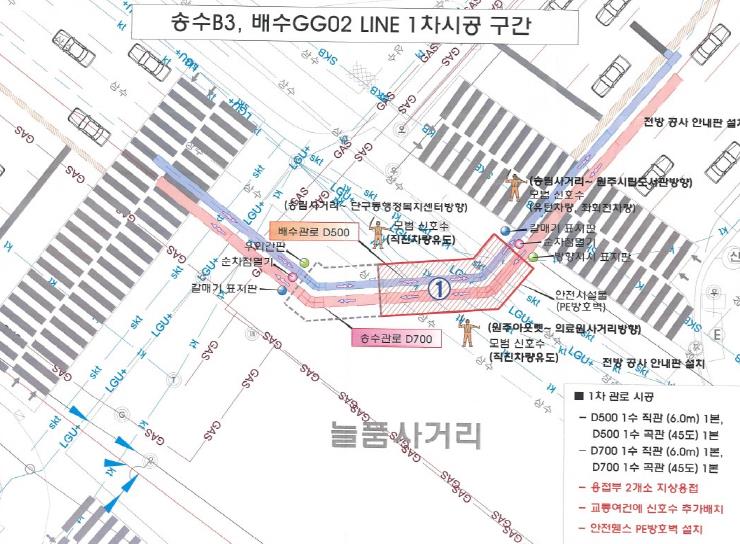 [뉴스다컴] 원주시상하수도사업소는 태장배수지 설치사업의 일환으로 진행되는 늘품사거리 교차로 구간 송배수관로 설치공사를 야간에 실시한다.