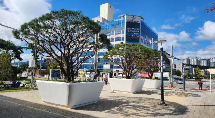 올해 1억5천만원 투입한 1단계 사업에서 대형 플랜터(화분) 설치 및 소나무를 식재하여 부족한 녹지 공간을 확보했으며, LED 등 경관조명을 설치해 야간에 광장을 이용하는 시민들이 안전하게 이용할 수 있도록 했다.