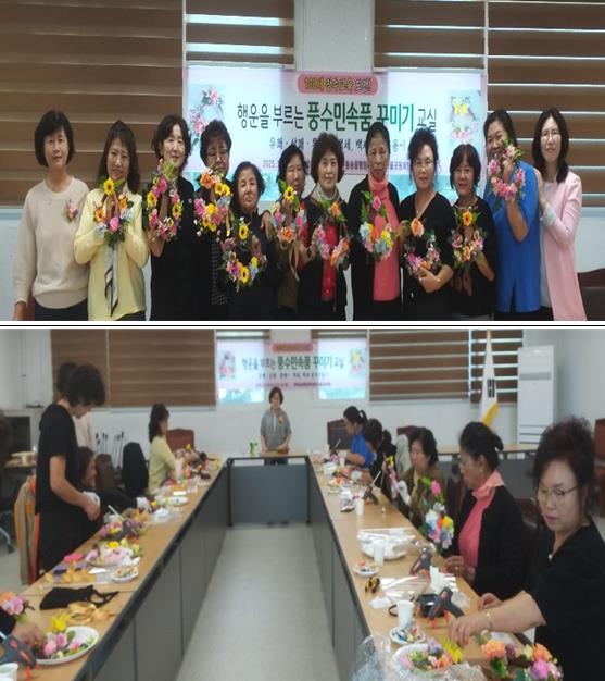 이번 교육은 동송읍 지역 주민들을 대상으로 행운을 부르는 “풍수민속품꾸미기(소 코뚜레)”교실을 통하여 세대 간 이해 증진 및 마을공동체의 활성화 및 건전한 여가 활동 기회를 제공했다.