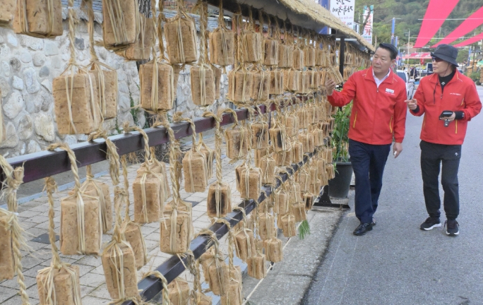 이번에 조성된 메주거리에는 총 33개의 거치대에 전통 방식으로 정성껏 엮은 메주 약 4,500개가 걸려 있어, 방문객들의 시선을 사로잡고 있다.