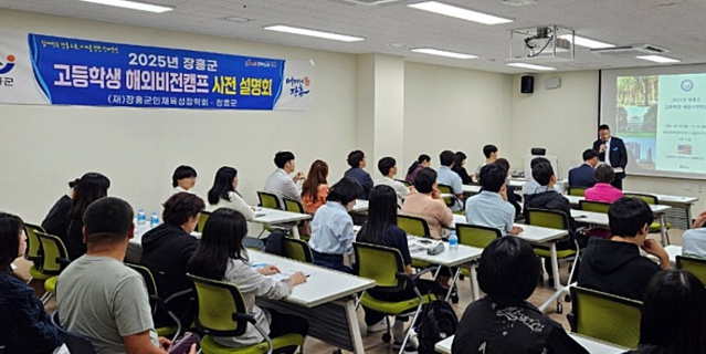 [뉴스다컴] 장흥군은 15일 (재)장흥군인재육성장학회 주관으로 장흥고등학교에서 ‘2025년 장흥군 고등학생 해외비전캠프 사전설명회’를 개최했다.