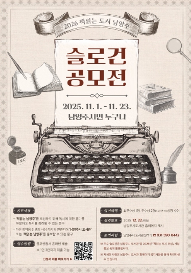 시 관계자는 “이번 슬로건 공모전은 시민이 직접 ‘책 읽는 도시 남양주’의 비전을 제시하는 의미있는 참여의 장이 될 것”이라며, “많은 시민이 자신만의 아이디어를 담아 참여해 주길 바란다”고 밝혔다.
