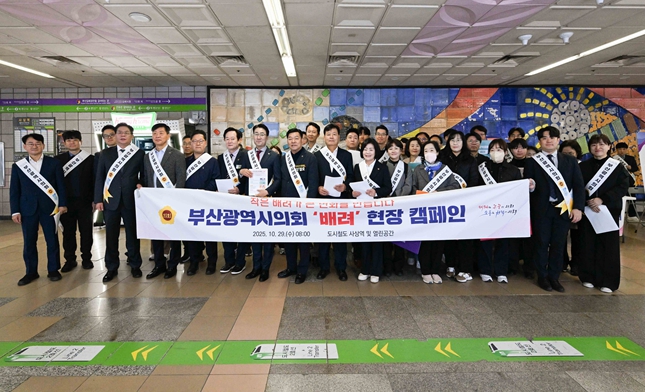 [뉴스다컴] 부산광역시의회는 10월 29일 오늘 오전 8시, 도시철도 사상역 역사 및 야외 열린공간에서‘부산광역시의회 공익캠페인 '배려〉’ 현장 캠페인과 함께‘찾아가는 현장소통’제2회 행사를 통합 개최했다.