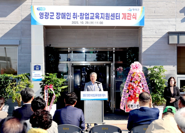 [뉴스다컴] 영광군은 지난 29일 오전 11시, 장애인복지타운 광장에서 장세일 군수, 도‧군의원, 장애인단체장 및 회원 등 100여 명이 참석한 가운데 ‘영광군 장애인 취·창업 교육지원센터’ 개관식을 개최했다.