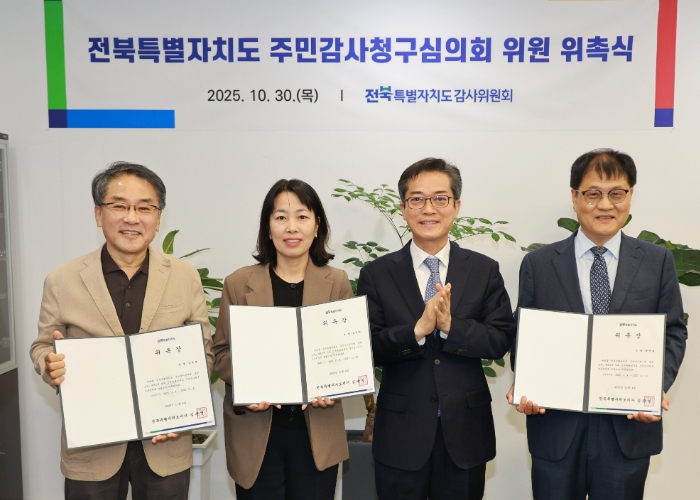 [뉴스다컴] 전북특별자치도는 공정하고 투명한 행정 실현을 위해 주민감사청구심의회 민간 위원 4명을 위촉했다고 30일 밝혔다.