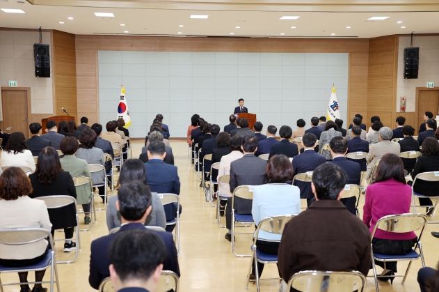 [뉴스다컴] 윤건영 충청북도교육감이 3일 오전, 화합관에서 11월 월례조회를 개최했다.