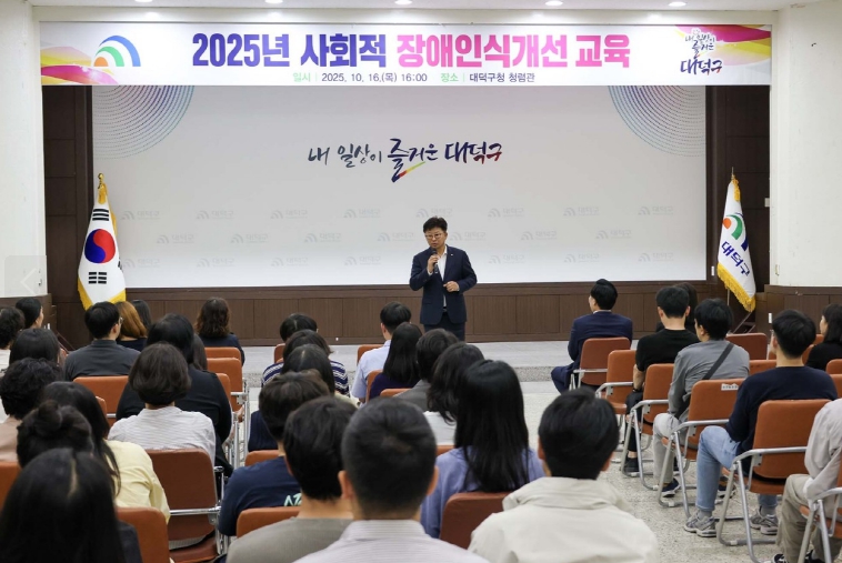 [뉴스다컴] 대전 대덕구는 16일 구청 청렴관에서 공직자 100여 명이 참석한 가운데 ‘사회적 장애 인식개선 교육’을 진행했다고 밝혔다.