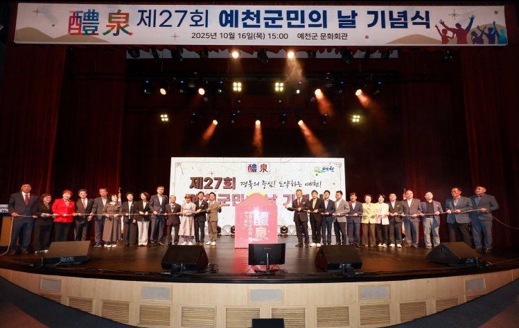 [뉴스다컴] 예천군은 16일 오후 3시, 예천군문화회관에서 ‘제27회 예천군민의 날 기념식’ 을 성황리에 개최했다. 이번 행사는 기관·단체장과 군민 등 500여 명이 참석한 가운데, 군민의 자긍심을 높이고 군민 화합을 도모하는 뜻깊은 자리로 마련됐다.