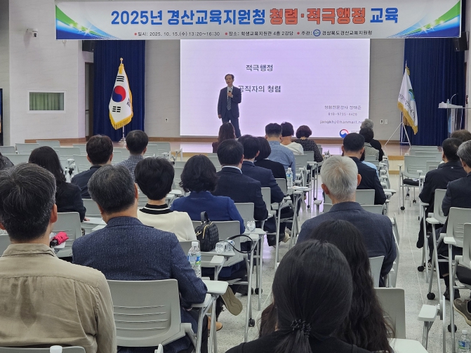 [뉴스다컴] 경산교육지원청은 10월 15일 13시 10분부터 경산교육지원청 학생교육지원관 2강당에서 청렴·적극행정 교육을 실시했다.